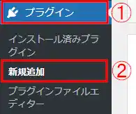 ①WordPressのトップ画面から左から「プラグイン」をクリック