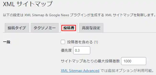 XMLサイトマップの設定画面から「投稿者」を選択します。