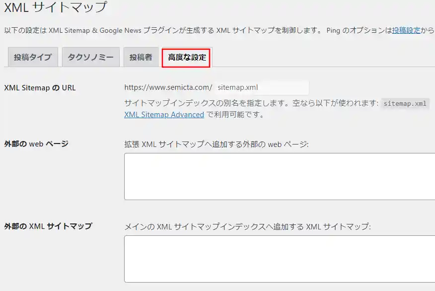 XMLサイトマップの設定画面から「高度な設定」を選択します。